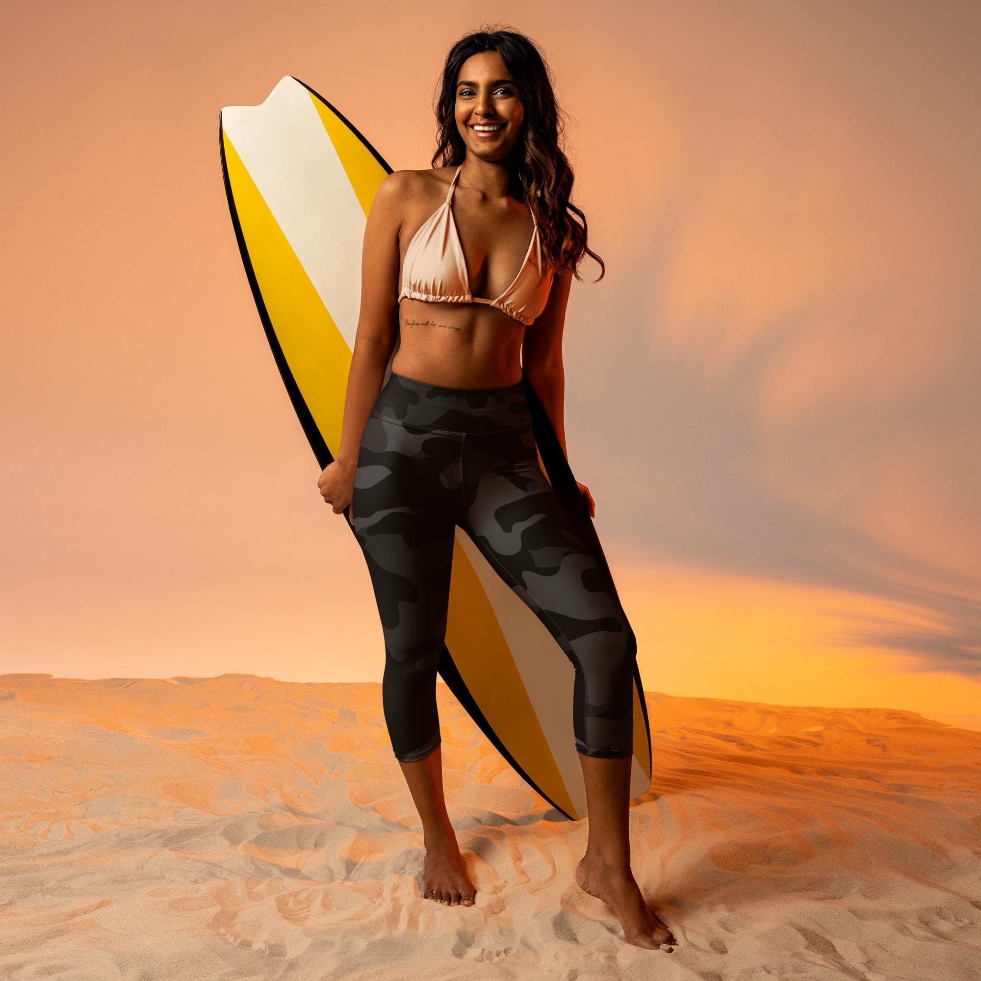 These yoga capri leggings with a high, elastic waistband are the perfect choice for yoga, the gym, or simply a comfortable evening at home.